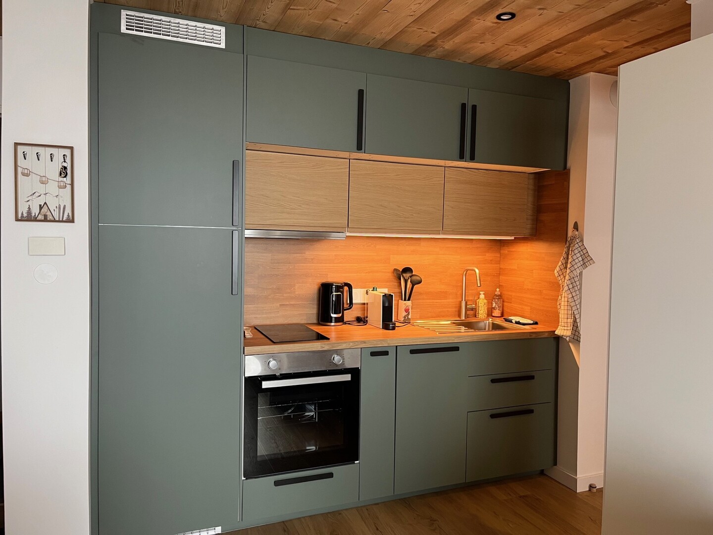 - 1 cuisine toute équipée avec four, grand frigo, lave vaisselle, bouilloire, machine à café, appareil à raclette.