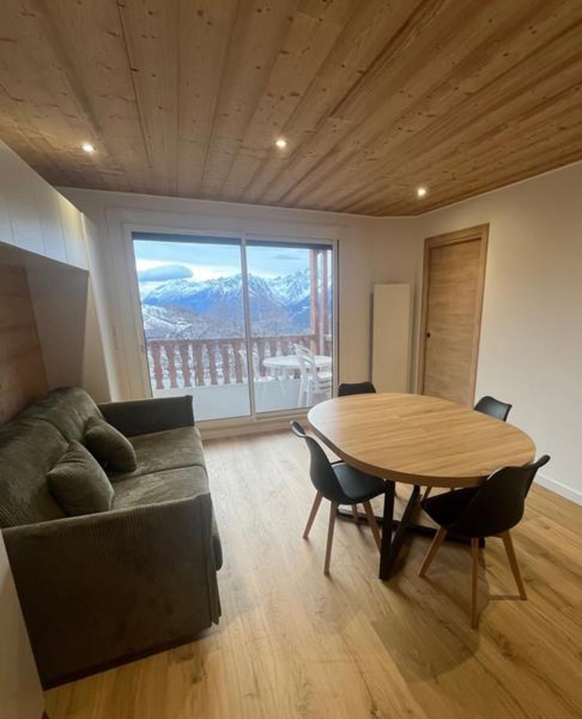 Nous louons notre appartement entièrement refait à neuf, de 39m2 pour 4/6 personnes situé au 2ème étage de la résidence Bellevue à Saint-François-Longchamp. Résidence sécurisée dont l’entrée donne sur la place de la madeleine, au pied des commerces et à 100m des pistes et remontées mécaniques ainsi que de l'office du tourisme et de la place principale où ont lieu la plupart des animations