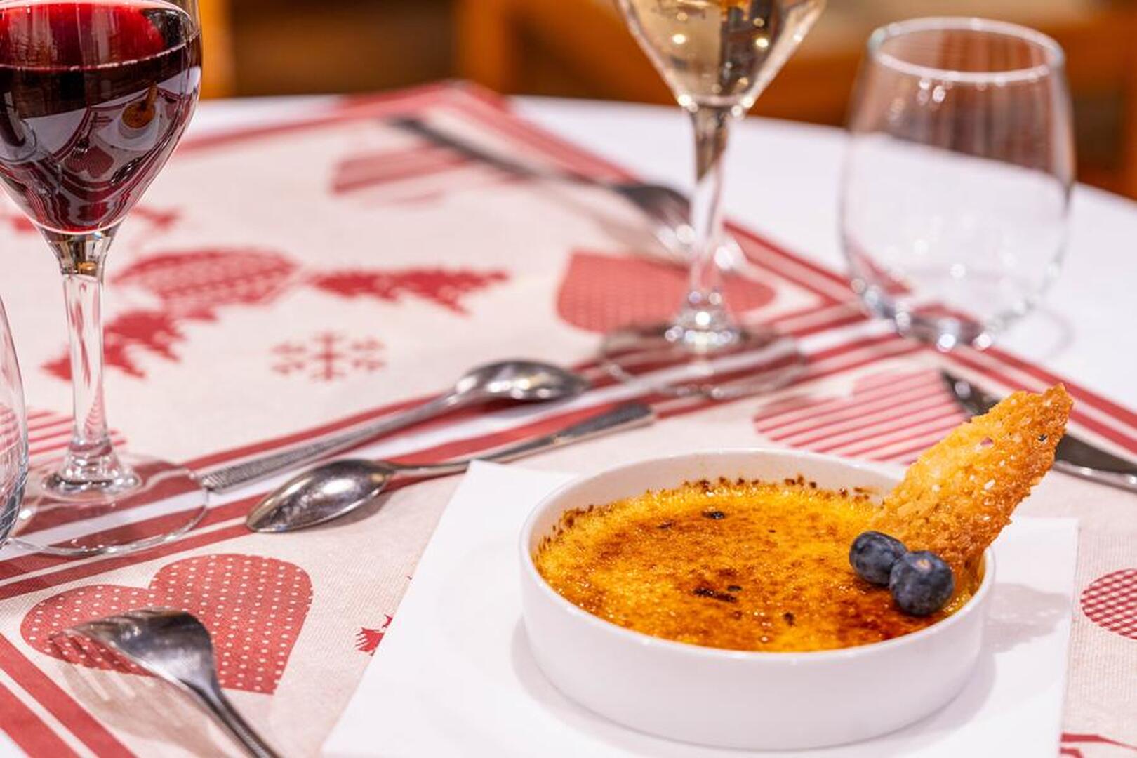 En soirée, notre restaurant devient un havre de convivialité, avec une ambiance de chalet montagnard. Des recettes montagnardes traditionnelles sont au rendez-vous pour satisfaire toutes les envies, des plus classiques aux plus audacieuses.